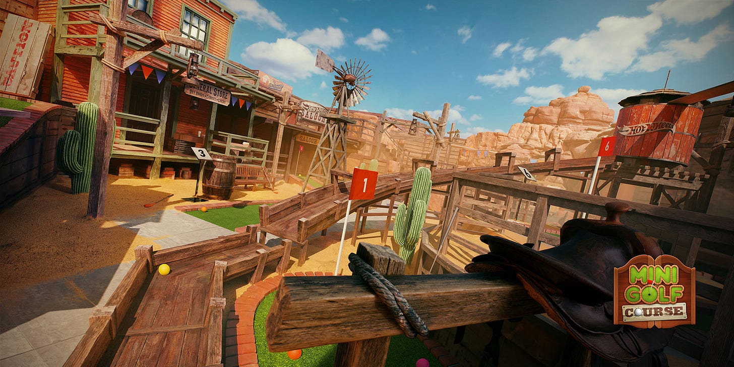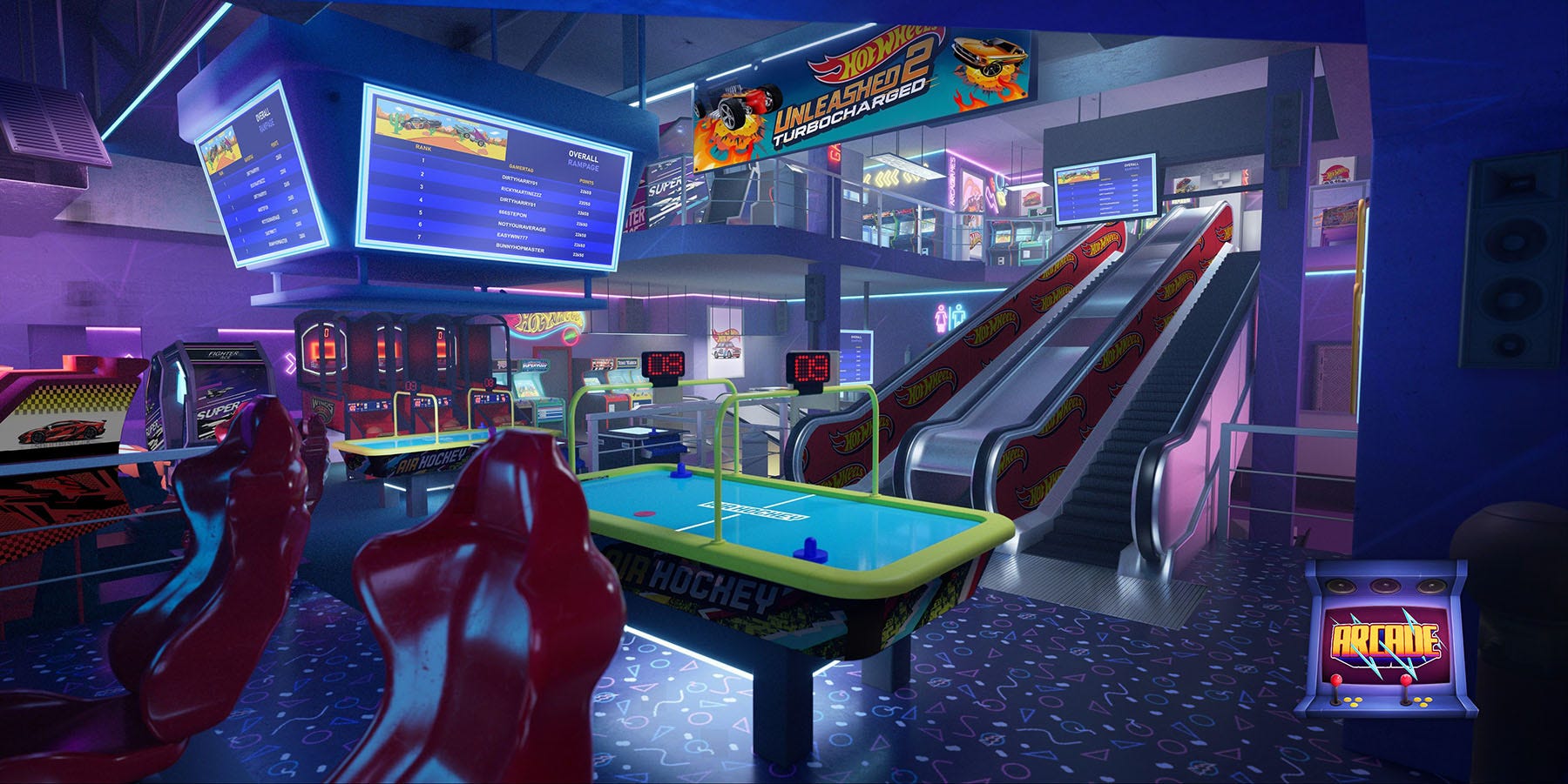 游戏有大量风火轮特色的赛道与场景,比如反重力轨道之类的,当然场景还是多变的,我们会穿越草地来到后院、迷你高尔夫球场、加油站,甚至恐龙博物馆,或者迷你高尔夫球场,街机室,多样的场景赛道提供了不同的乐趣。同时,游戏支持故事模式,本地分屏多人以及在线匹配多人模式,主要有计时赛,快速比赛,漂移大师,淘汰赛,不过或许最大的特色就是自定义跑道(?),除了你亲自动手的乐趣,DIY一个蜿蜒曲折的赛道,遍布陷阱,但别忘了你也要亲自测试一下,自己折磨自己就不好了,社区中也有其他玩家的创意供你体验。至于自定义涂装,那更是见怪不怪,对于我这种懒人,多看看社区中的就好了。