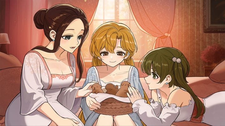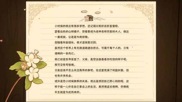 游戏主线剧情内容够多,玩家可以体验到养女儿的魅力;但随机内容却未免有些太过空洞,一周目下来的随机内容屈指可数,其选项加成玩家也了如指掌,难免会丧失玩下去的动力,到多周目则完全成为无情的推线机器。真结局某个人物的设计也是评价各有千秋,差评大多都是因此,我在此也便不剧透解读了,可自行于游戏中体会一番。