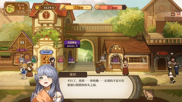 目前还不支持快进功能,更不会支持调节文本速度,这意味着多周目仍需重复浏览剧情,希望尽快实装此功能。而游戏有着多达60多种职业结局、20余种情感结局,玩家尚且可以读取存档快速选择不同的职业结局,但情感线却则只能刷多周目而没办法自主选择——相信在武器店倒过货的玩家都深受其害,我好好的鲜花差点就被铁匠儿子给拱了,警惕武器店老板的刷钱骗局!
